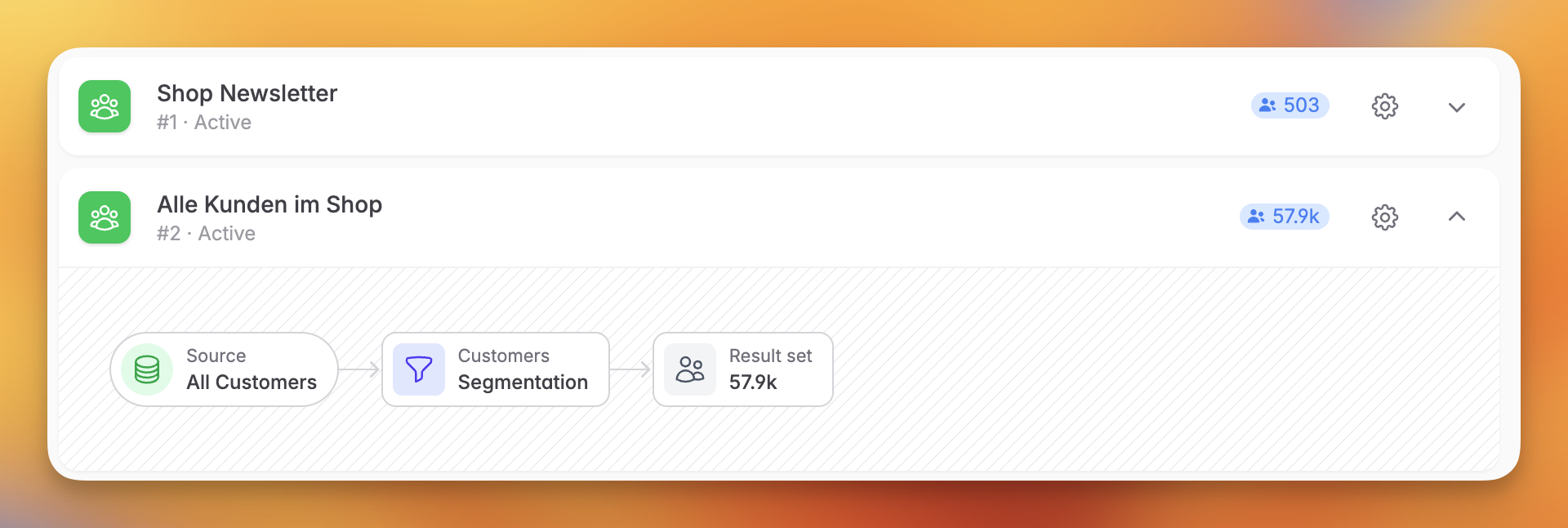 • New: Audiences with result counts directly in the overview — instantly see how large a segment is.